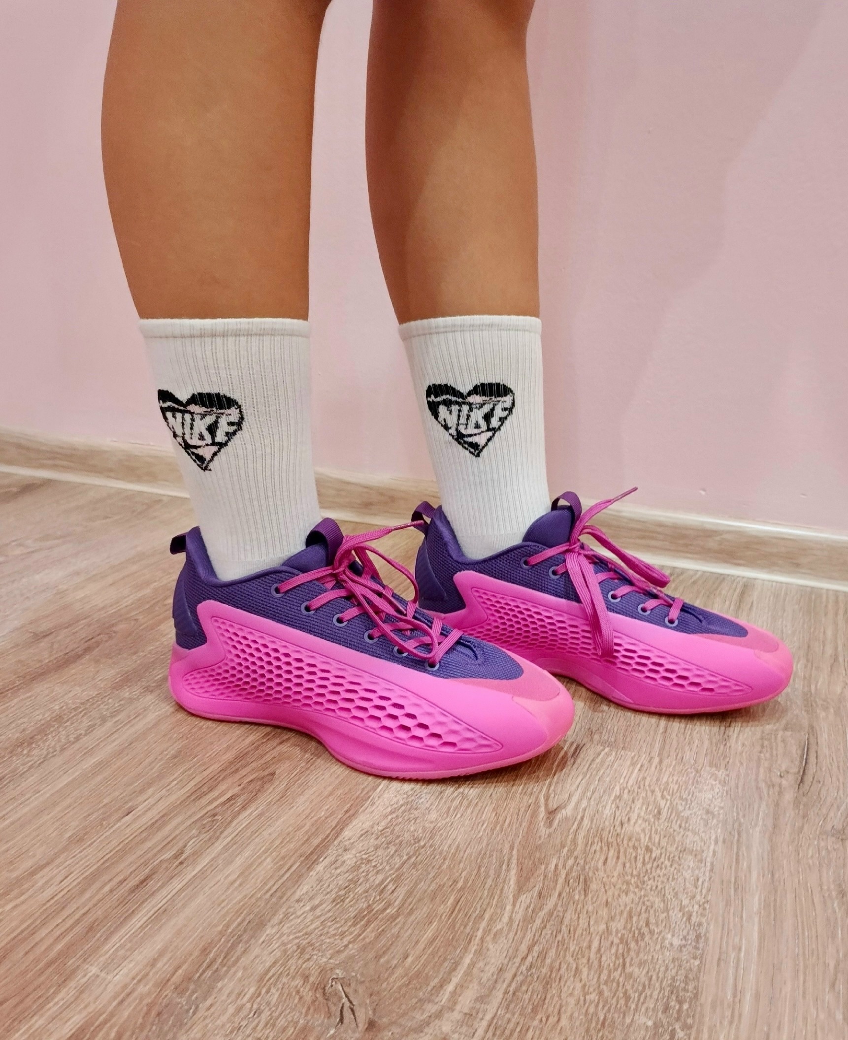 Модель AE 1 Low впечатляет своим низким кроем, который обеспечивает свободу движений и оптимальную поддержку стопы. Яркое сочетание розовых и пурпурных оттенков делает обувь смелой и привлекательной, позволяя выделиться как на баскетбольной площадке, так и в повседневном стиле.